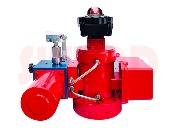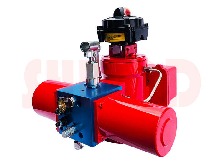 螺旋擺動缸電液執行器是采用螺旋擺動缸,為上海茄子视频色版FDS3係列智能型電液執行器,能實現自動回轉功能,自帶超負荷安全保護,可在現場/遠程進行閥門開、關操作,可選擇調節型以及開關型控製模式,現場帶閥門開度顯示以及全開全關位置指示,故障報警指示等功能。