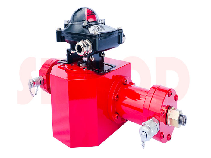 液動執行器采用齒輪齒條機構,可選單作用和雙作用,具有啟閉扭矩大,結構簡單可靠,體積小巧,運動平穩,輸出扭矩呈線性等特點。可選擇搭配離合式手動機構,或者閥門限位開關,可作為液動球閥,液動蝶閥等角行程動作閥門的執行機構。